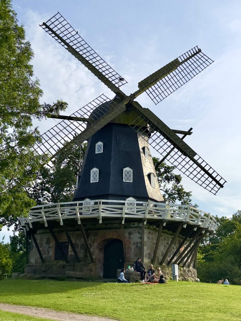 Slottsparken är väldigt trevlig också. Men sin väderkvarn, sina vackra planeringar och sin mysiga uteservering. Här älskar vi också att promenera.