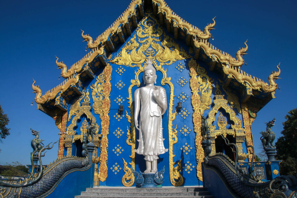 Nej för det finns ju även ett mindre känt tempel inom stadens gränser. Det är också unikt i sin färg. Det blå templet, eller Wat Rong Suea Ten som det egentligen heter.